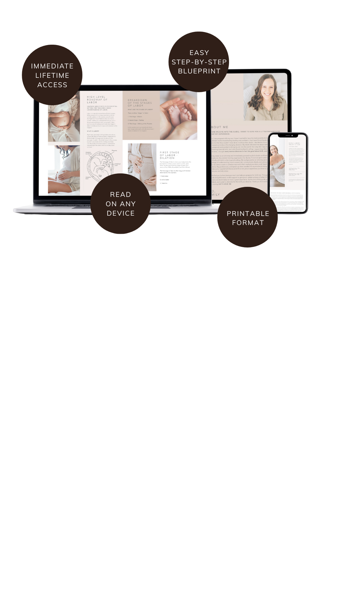 The guide also travels with you on any device for reference when questions, options, and decisions come up during birth. No need to take notes or memorize details. The info is always available to you!